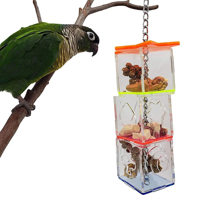 BEST 3 Layer Parrot Hanging Chewing Feeding Toy Bird Feeding Transparent Food Feeder Holder Hanging Fora