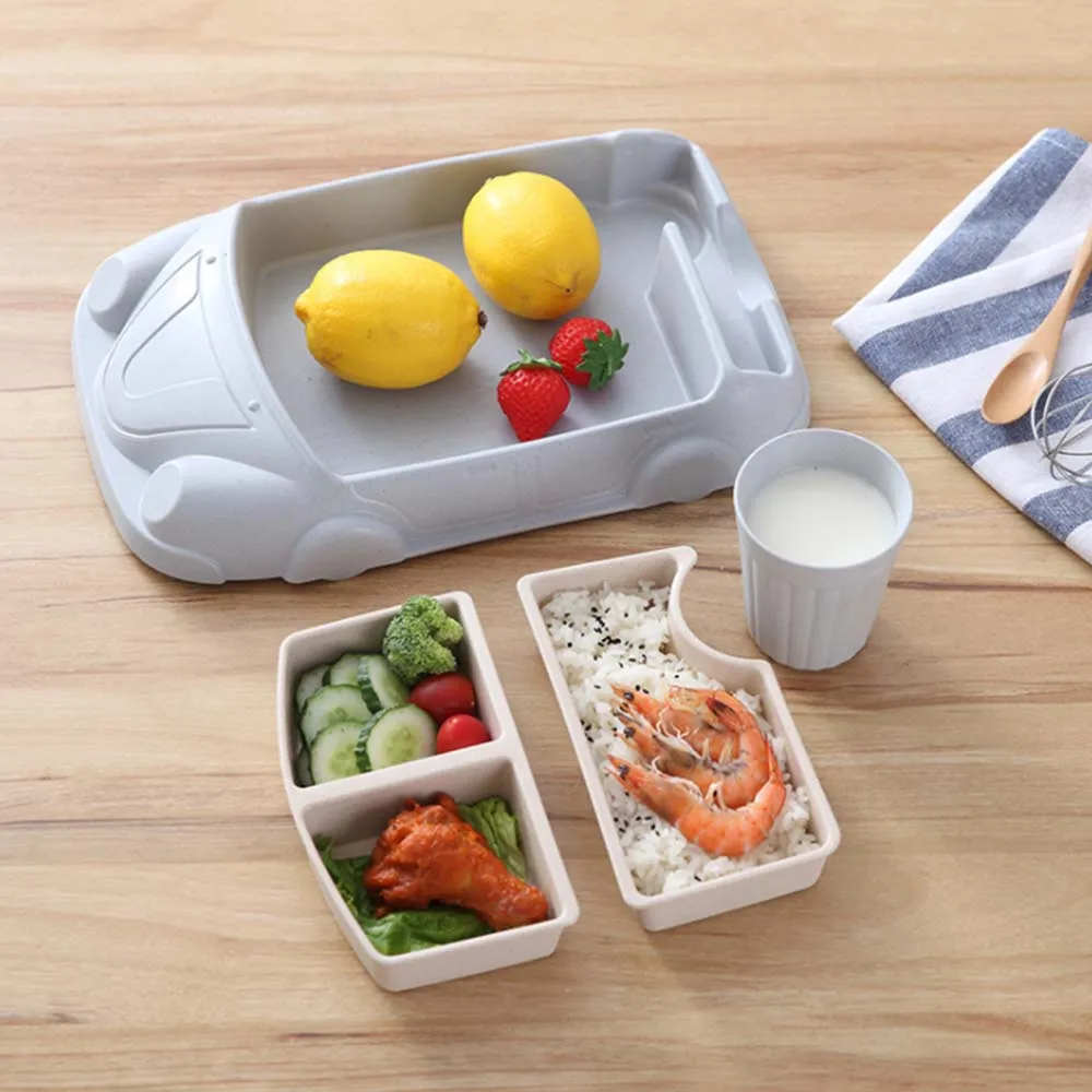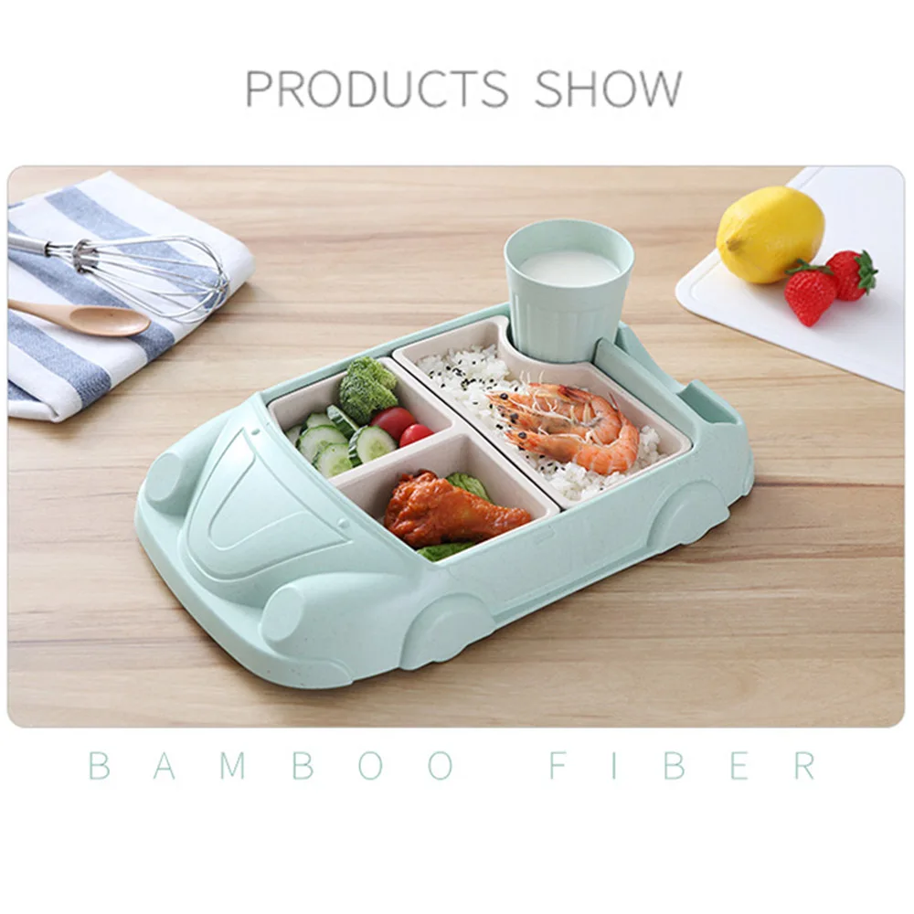 Baby Food Containers Bamboo Fiber Infant training dishes feeding Set Car shape Bowl Cup Plates Sets